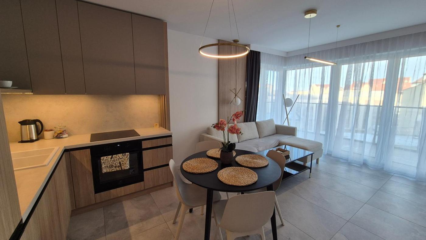 Apartament Premium z 1 sypialnią. This apartment includes 1 living room, 1 separate bedroom and 1 bathroom with a walk-in shower and free toiletries. Guests will find a stovetop, a refrigerator, a dishwasher and kitchenware in the fully equipped kitchenette. The apartment also features a barbecue. This apartment is air-conditioned and has a seating area with a flat-screen TV, a washing machine, soundproof walls, a tea and coffee maker, as well as a dining area. The unit has 2 beds. Apartament - 3 osobowy. Powierzchnia pokoju ok.: 46 mkw.